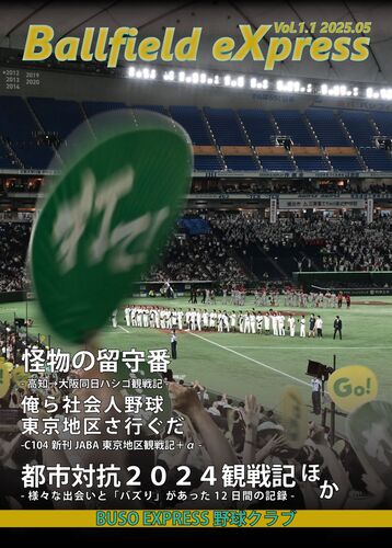 誌名:Ballfield eXpress Vol.1.1 発行:2025/05/11( 文学フリマ東京40 委託新刊) (※自スペースでの初売りは2025/05/18 淡路島ブックマーケット にて) 誌面:表紙フルカラー/本文モノクロ 頁数:64頁(本文) 頒価:500円(2025.8価格改定) C105(2024年冬コ…
